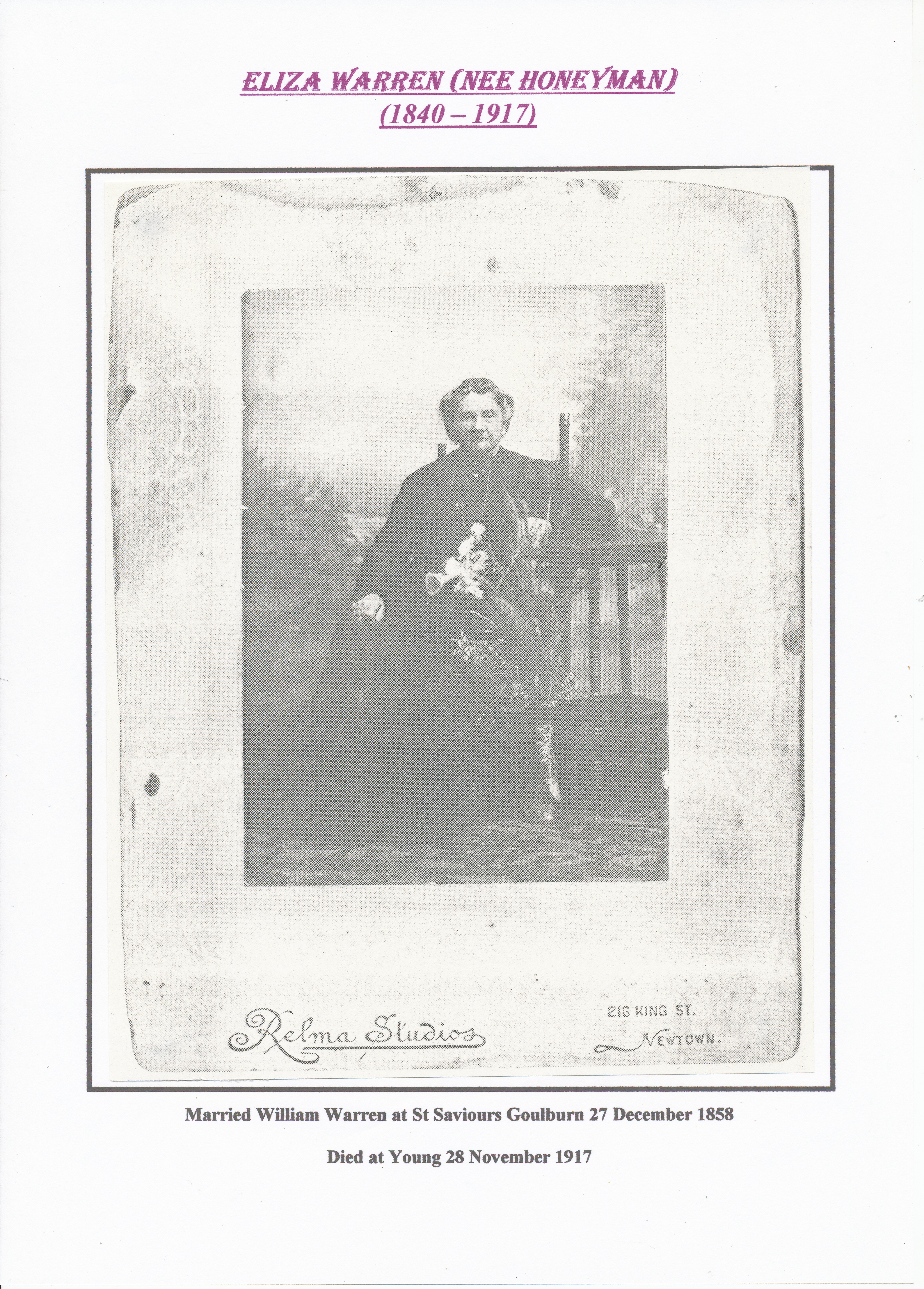 3 Sarah Jane Moore (married at St Lawrence’s Church, Sydney in 1852 [6 children]